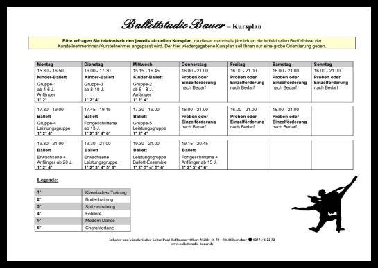 Wir bieten Ihnen Kurse in klassischem Ballett / tänzerischer Gymnastik / Modern Dance / Folklore und Charaktertanz